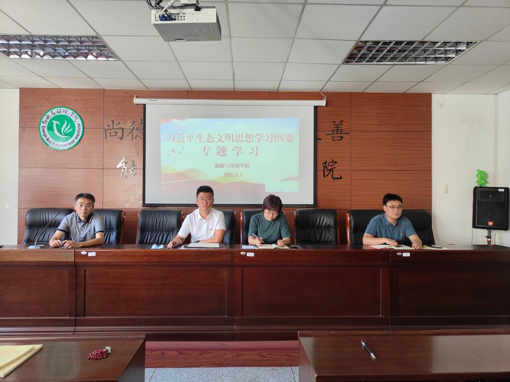 为深入学习贯彻习近平生态文明思想,深刻认识生态文明建设的重大意义,让习近平生态文明思想入脑入心,指导实践。9月1日下午,学院组织全体教职工专题学习《习近平生态文明思想学习纲要》, 党委书记张鑫同志主持学习。