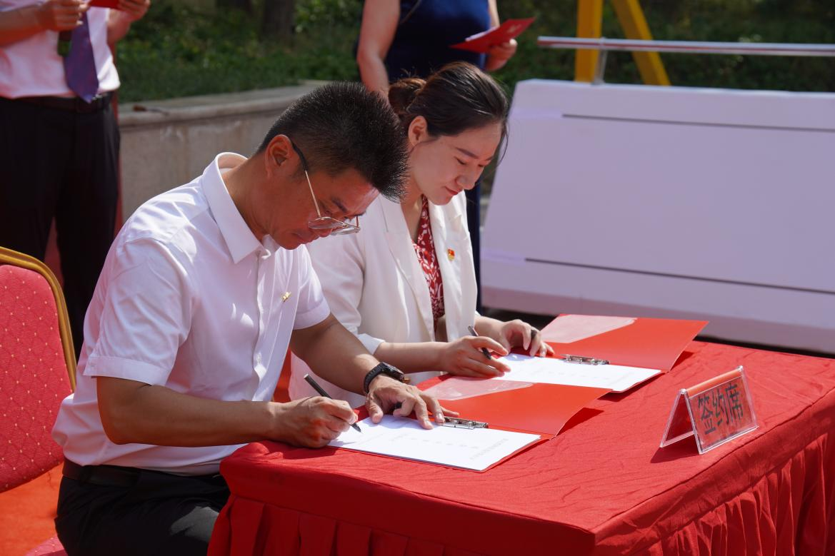在启动仪式上,学院党委书记张鑫与黄河西路街道恒悦社区党委书记李晶共同签署了“暖阳双向服务”项目协议书,包头市民委党组成员、三级调研员袁明、昆区区委常委、统战部部长张国强向两家签约单位授牌。