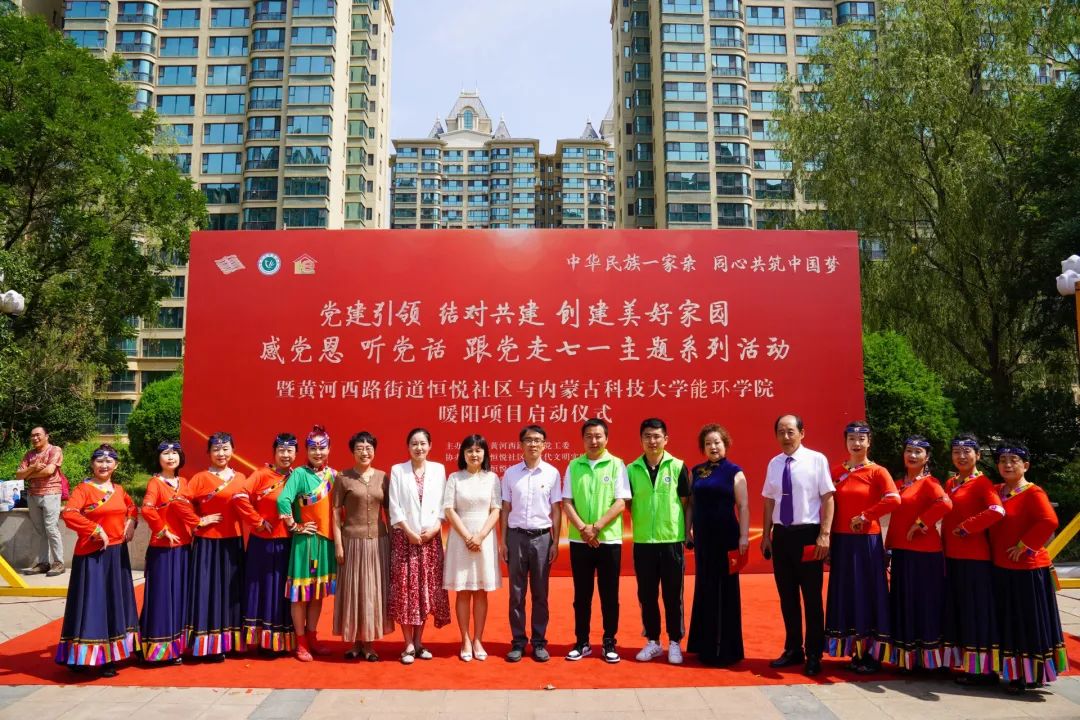 项目启动仪式于6月26日上午在黄河西路街道恒悦社区举行。包头市民委党组成员、三级调研员袁明,昆区区委常委、统战部部长张国强,黄河西路街道党工委书记平付龙,学院党委书记张鑫,党委副书记、副院长吴晅,黄河西路街道党工委副书记曹荣出席活动。