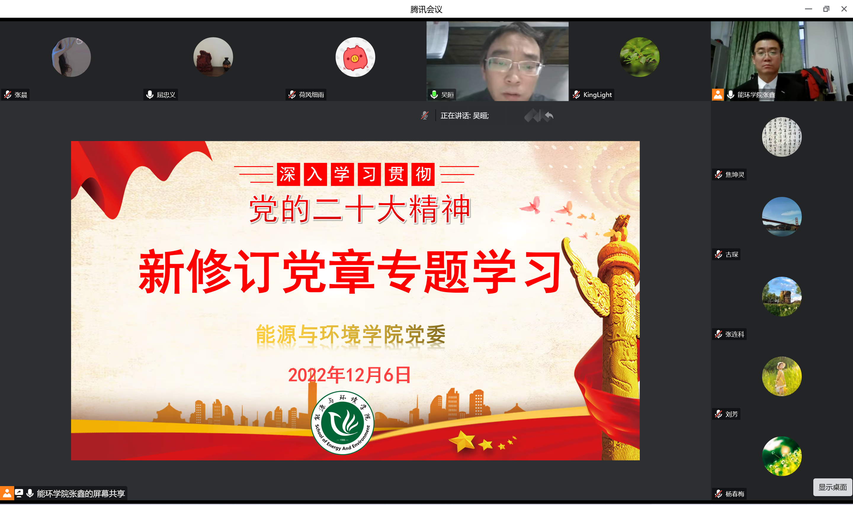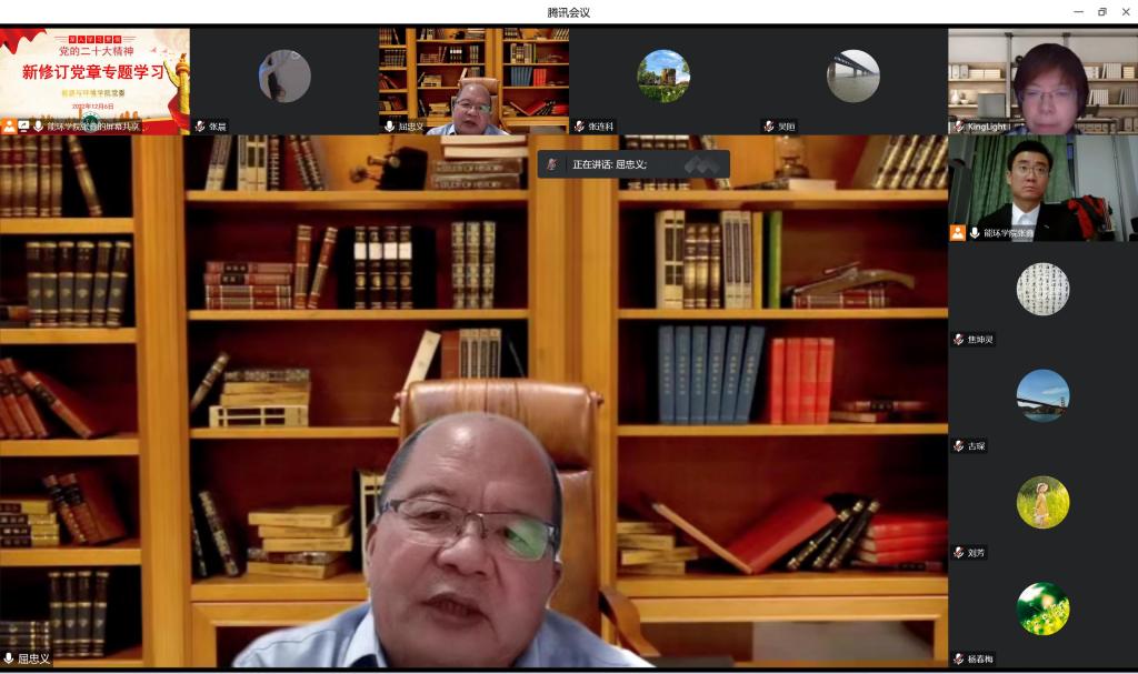 12月8日下午,能源与环境学院理论中心组集中学习新修订的《中国共产党章程》,学院党委书记张鑫主持,学院党委委员、各党支部书记参会,校党委委员、副校长屈忠义旁听指导本次学习活动。本次学习会采取线上腾讯会议形式开展。
