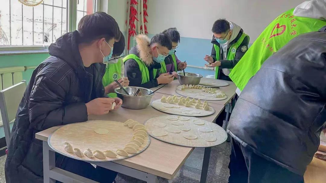 师生志愿者们各司其职、分工合作,一起动手为老人们包饺子。小小的饺子,汇聚了每一位志愿者的爱心,让敬老院的每一位老人都感受到了冬日的温暖。随后,志愿者们陪老人们唠家常,给老人们捶背、按摩,帮老人们整理房间、打扫卫生,让老人们倍感温暖。