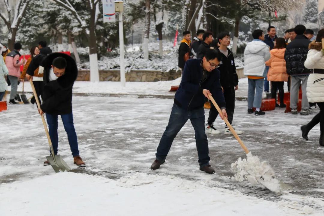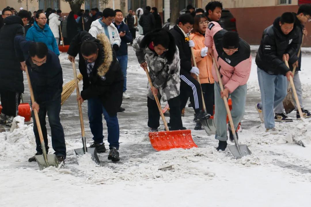 劳动的过程中充满了欢声笑语,每个人都乐在其中,扫雪队伍成为冬日校园一道亮丽的风景线。