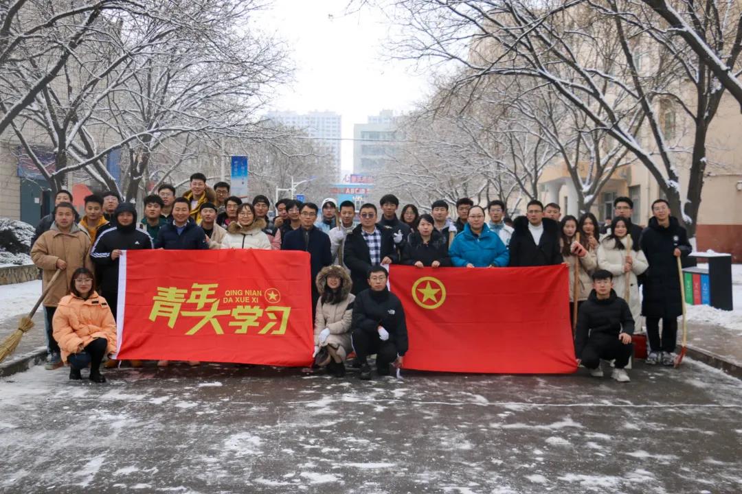 12月7日,鹿城包头普降大雪,给校园道路的通行带来了不便和隐患。为了增强师生党员、团学干部吃苦耐劳、无私奉献的精神,充分发挥先锋模范作用,12月8日,学院党委副书记、副院长吴晅与来自教工第二党支部、学生第二党支部、学生第四党支部、团总支、学生会、青年传媒中心的师生党员、团学干部共100多人在学生7号公寓楼、食堂、活动中心附近区域开展扫雪除冰活动。