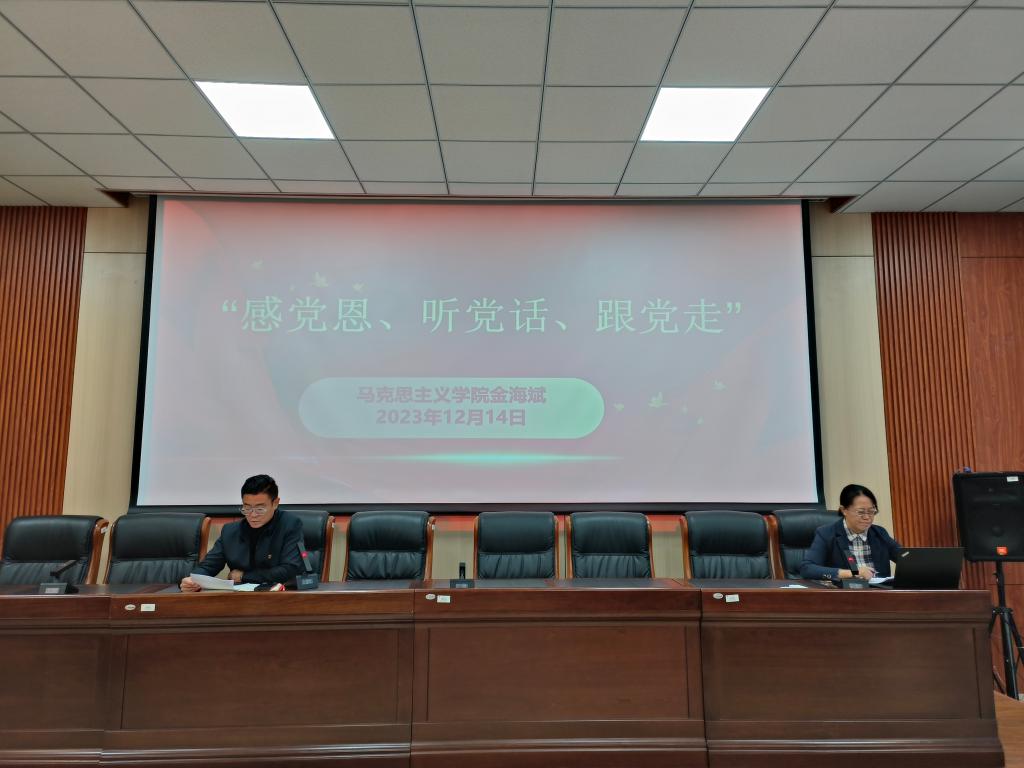 2023年12月14日下午,学院特邀请校宣讲团成员、马克思主义学院副院长金海斌教授来院做主题宣讲。宣讲会在秋实副楼418会议室举行,学院领导班子、全体教职工参会聆听。