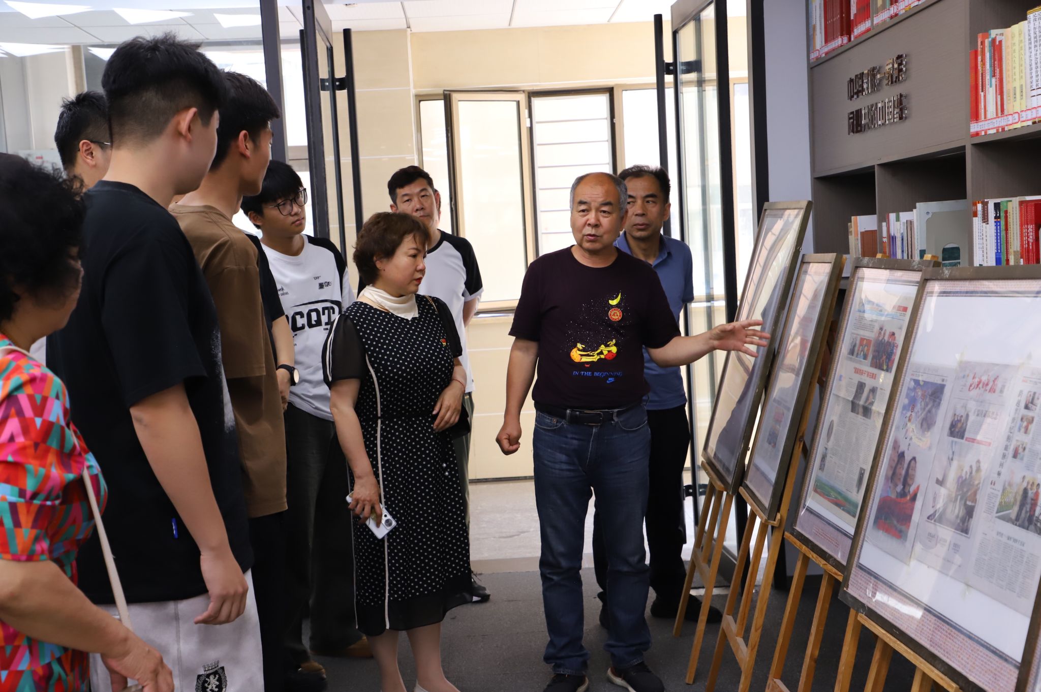 活动现场同步展出了“三千孤儿入内蒙”专题报展,并荣幸邀请到“全国最美集报人”申雨林老师进行导览讲解。申老师以其多年潜心收藏的珍贵报刊原件为教材,带领师生穿梭于历史长河。从泛黄的旧报纸上刊载“三千孤儿”抵达草原的首次报道,到后续记录孩子们在草原成长的点滴;从反映各民族守望相助、共建家园的生动通讯,到展现不同历史时期国家民族团结进步事业伟大成就的专题版面。