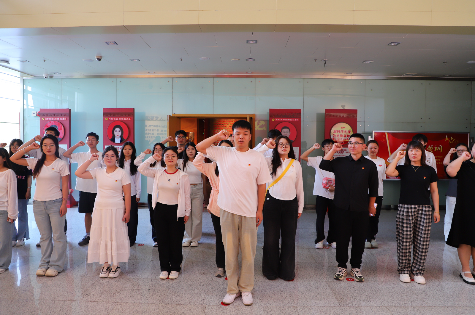 参观结束后,全体党员面向鲜红的党旗,庄严举起右拳,重温入党誓词。铿锵有力的誓言在展厅内回荡,表达了师生党员不忘初心、砥砺前行的坚定决心。