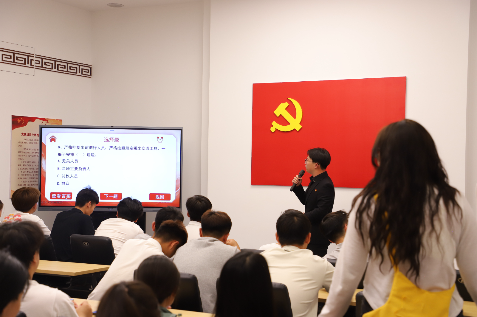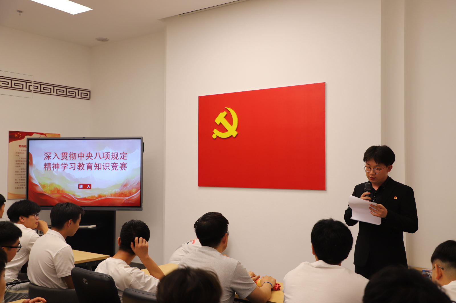 随后,学院党委在二楼活动室开展了“深入贯彻中央八项规定精神”知识竞赛,以赛促学巩固学习成果。竞赛精心设计选择题、判断题、填空题等多种类型,在紧张激烈的抢答环节,学生党员们反应敏捷、踊跃作答,展现了良好的政治理论素养。知识竞赛既是对中央八项规定精神的深入学习贯彻,更是一堂生动的纪律教育实践课。大家一致表示,通过竞赛比拼,进一步深化了对中央八项规定精神的理解,增强了纪律意识,将以更加饱满的热情和严实的作风投身学习和工作,让清风正气在校园落地生根,为学院发展注入青春动力。