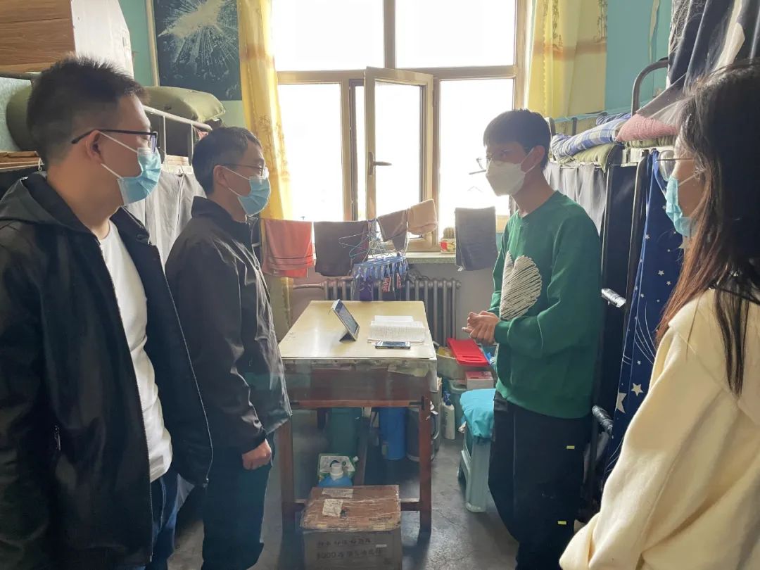 在慰问走访中,党委副书记、副院长吴晅与学生亲切交流,询问学生近期的生活状况,了解他们学习及生活上遇到的困难。特别叮嘱同学们在特殊时期要提高疫情防控意识,自觉进行每日健康监测,要勤洗手、勤消毒,出门全程佩戴口罩,就餐注意安全距离,做好每日宿舍的开窗通风、卫生清洁等工作。他强调,同学们一定要严格遵守学校疫情防控的相关要求和纪律,严禁点取外卖、出入校园,要合理安排疫情防控期间的学习生活,鼓励大家课余时间在宿舍开展自主学习。