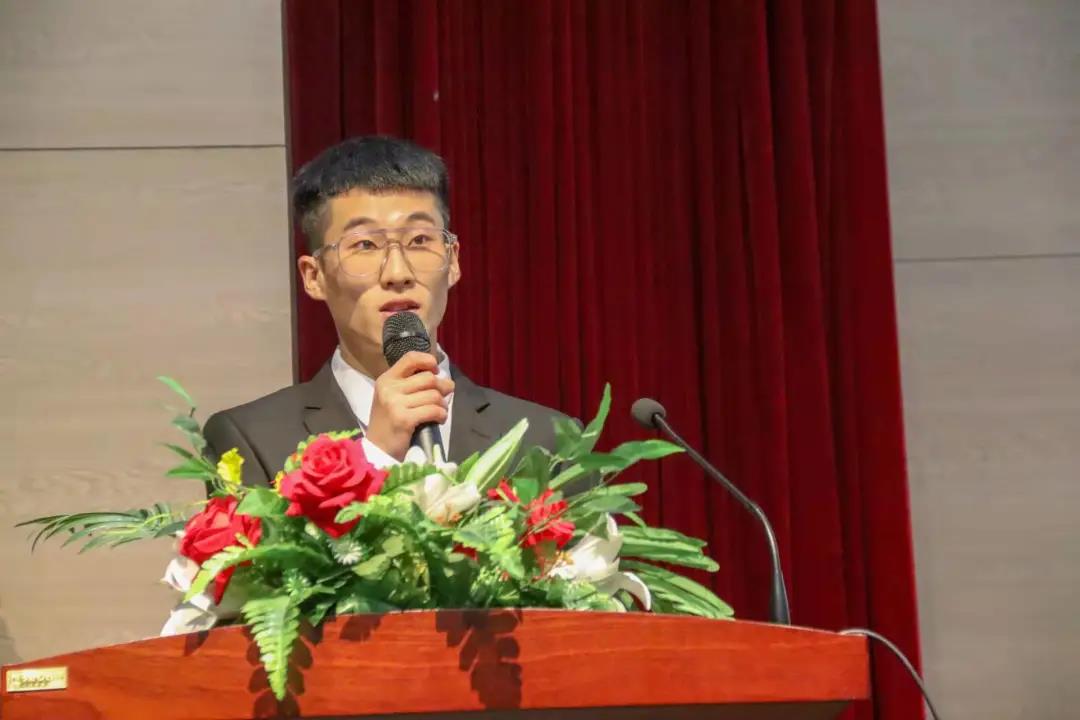 随后,由第八期“青马工程”培训班优秀学员代表毕温薪上台发言。他表示:“通过参加青马班的学习,深刻理解了作为新时代大学生所要担负的使命与责任。他表示,将在接下来的工作与学习中不断积累经验,不断提升自己,学会向他人学习,时刻以高标准要求自己,起到良好的模范带头作用。”