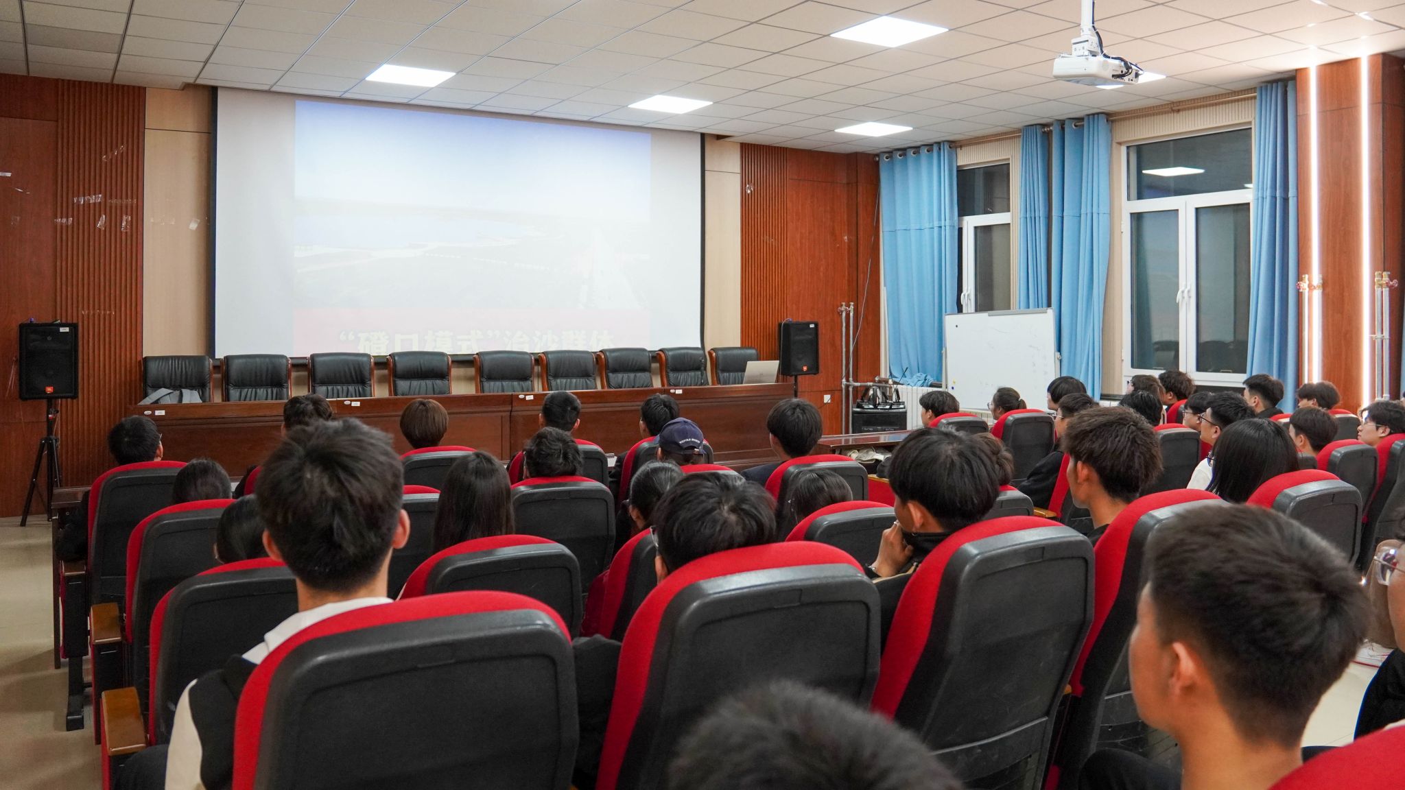 近日,内蒙古自治区党委宣传部授予“磴口模式”治沙群体“北疆楷模”荣誉称号。为深入践行习近平生态文明思想,特别是习近平总书记关于防沙治沙和“三北”工程的重要讲话和指示批示精神,着力铸牢中华民族共同体意识,学院于4月7日晚组织团学干部在秋实北楼大会议室集中收看《北疆楷模——“磴口模式”治沙群体》先进事迹报告会。
