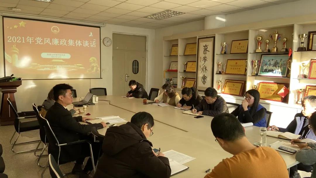 为切实落实党风廉政建设责任制,增强领导干部廉洁自律意识,认真贯彻和落实《中国共产党纪律处分条例》和《廉洁自律准则》的精神,2021年12月29日我院在秋实楼B403会议室开展党风廉政集体谈话。学院党委书记张鑫主持会议,学院领导班子、科级干部、各系、专业负责人参加了廉政谈话会。