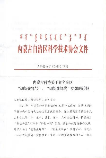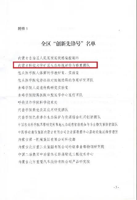 近日,内蒙古自治区科学技术协会网公布了内蒙古科协关于命名全区“创新先锋号”、“创新先锋岗”结果的通报。我院“矿区生态环境评价与修复团队”荣获全区“创新先锋号”荣誉称号。