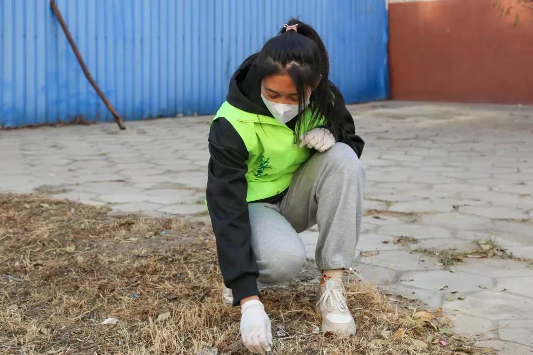 活动最后,师生代表们以小组为单位,到校园的各个角落捡烟头。大家弯腰举手投足间,充满了爱护校园环境之情。