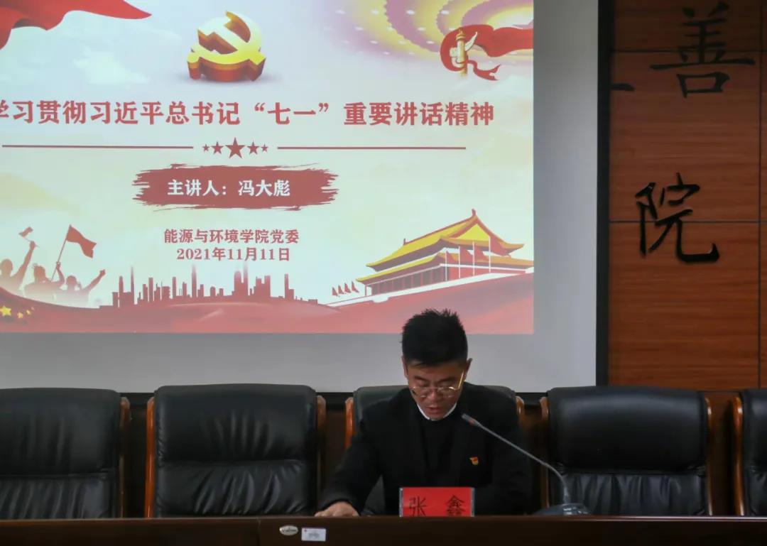 11月11日,永利官网习近平总书记“七一”重要讲话精神专题宣讲队冯大彪同志应邀来我院作“学习贯彻习近平总书记‘七一’重要讲话精神”主题宣讲。学院全体党政领导、全体教职工、学生党员代表共同聆听了宣讲。