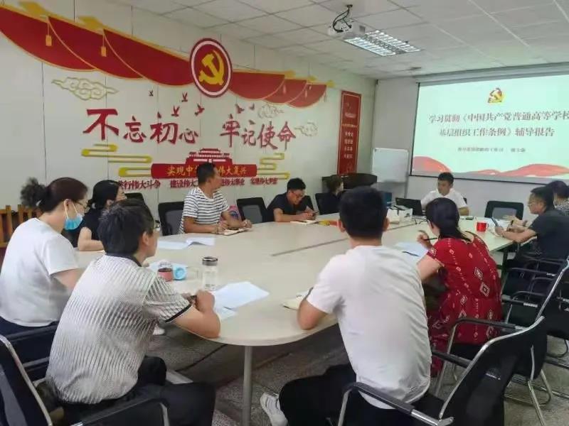 我院于8月20日下午在秋实楼B403会议室召开党委理论中心组专题学习,学习由教育部思政司司长魏士强主讲的《学习贯彻《中国共产党普通高等学校基层组织工作条例》辅导报告》。学院党委委员、各支部书记参加会议,学院党委书记张鑫主持会议。