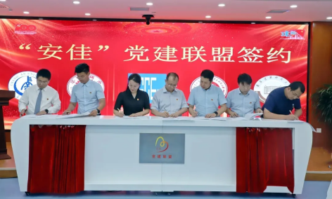 中共陕西省委党校(行政学院)原副巡视员、校教学督导范勇与中建八局西北公司党委副书记、工会主席杨寿奇共同为“‘安佳’党建联盟”揭牌,各联盟单位党组织书记共同签订了《“安佳”党建联盟协议书》,进一步明确了联盟共建的目标、共建内容,形成了初步的共建机制,筑起校企合作“红色堡垒”。