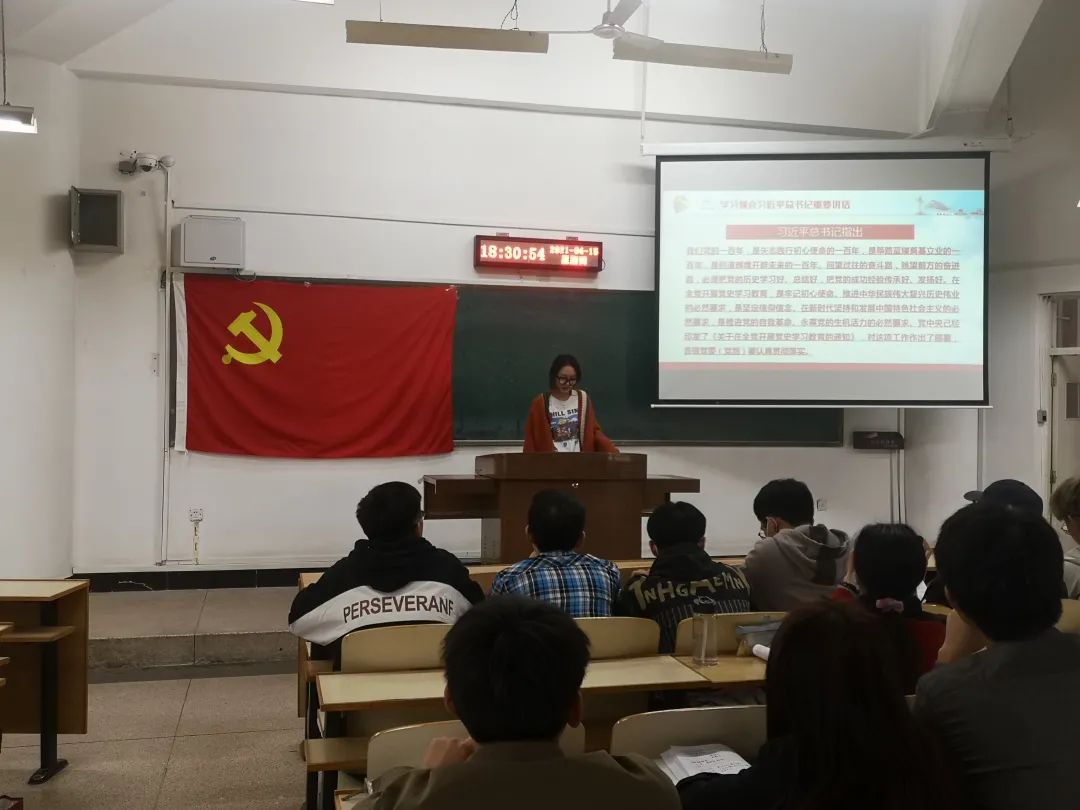 2021年4月15日,我院学生第一党支部在二教c103开展“学党史、强信念、跟党走”党史学习教育。学生第一党支部全体学生党员、预备党员参加学习。今年是中国共产党成立100周年。百年征程波澜壮阔,百年初心历久弥坚。从播下革命火种的小小红船,到领航复兴伟业的巍巍巨轮,在百年奋斗历程中,我们党领导人民取得了举世瞩目的辉煌成就,书写了波澜壮阔的历史画卷,留下了弥足珍贵的宝贵经验和精神财富。