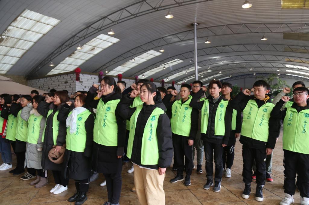 到达基地之后,首先进行了团队素质拓展训练开营仪式。开营仪式上,全体学员右拳高举,面对团旗庄严宣誓:我志愿加入中国共产主义青年团,坚决拥护中国共产党的领导,遵守团的章程,执行团的决议,履行团员义务,严守团的纪律,勤奋学习,积极工作,吃苦在前,享受在后,为共产主义事业而奋斗!声音嘹亮,催人奋进,激发斗志,充满力量。