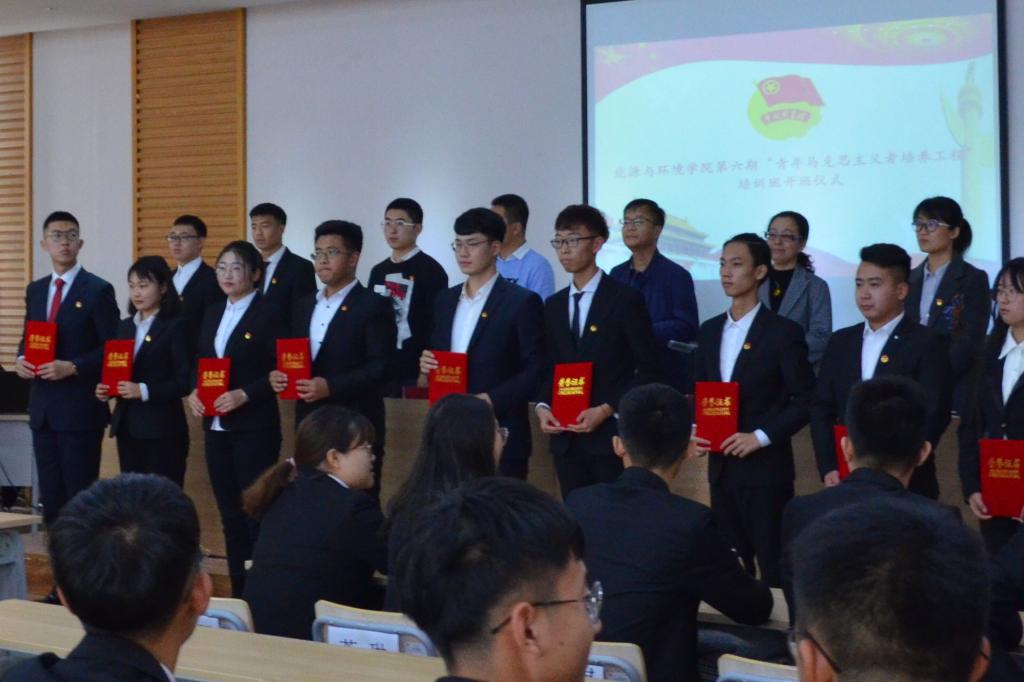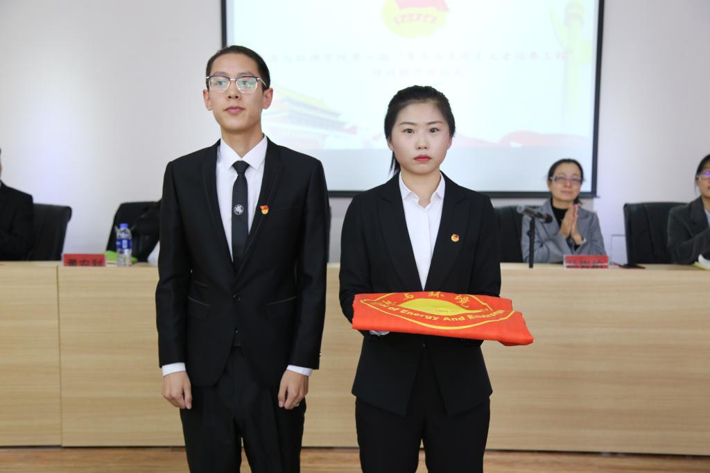 仪式上,学院第五期“青年马克思主义者培养工程”培训班学员代表席顺为第六期“青年马克思主义者培养工程”培训班学员代表贾宏丽授班旗,诠释了青马精神的无悔传承和生生不息。