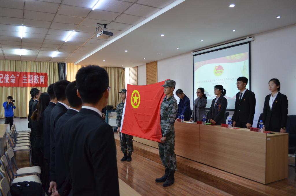 仪式开始,全体学员高唱中国共产主义青年团团歌,迎共青团团旗。
