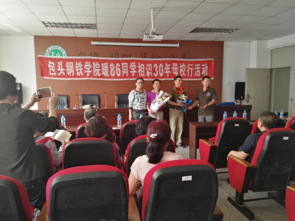 8月27日11时,我校暖86级校友20余人相聚母校,举行相识30周年聚会,共诉母校情、师生情、校友情。 能环学院院长武文斐教授在会议室作了热情洋溢的致辞,他代表母校全体师生对老校友表示热烈欢迎,肯定了86届校友在工作中取得的成就,表达了对老校友的美好祝愿。为表示感谢,86届校友用鲜花伴着浓浓的情谊表示对学校的祝福。