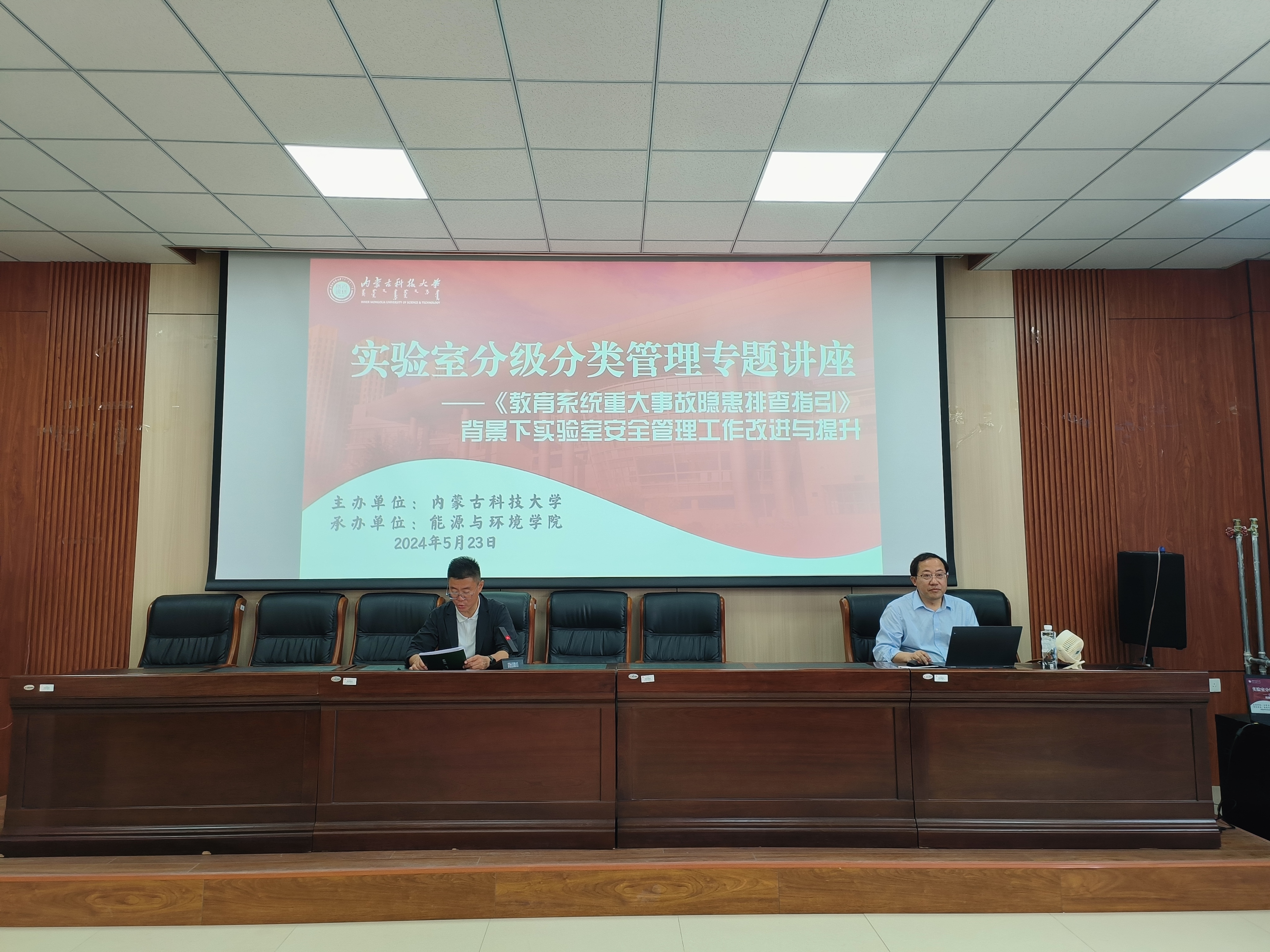 为了增强实验室安全意识,加强实验室安全管理,2024年5月23日下午,由校实验室与设备管理处主办、学院承办的“实验室分级分类管理培训暨《教育系统重大事故隐患排查指引》背景下实验室安全管理工作改进与提升”专题讲座在秋实北楼418会议室组织开展。讲座由学院党委书记张鑫致开场辞,内蒙古工业大学教务处李利军处长主讲,学院百余名师生参加了此次系列培训。