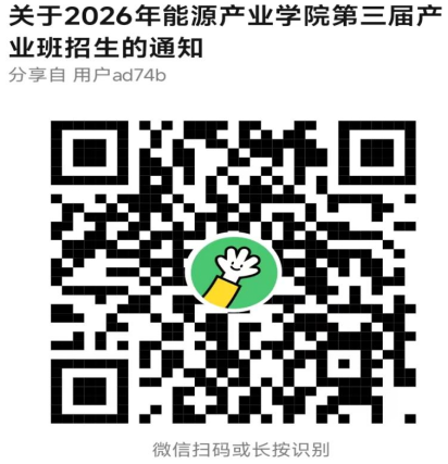 永利官网能源产业学院第三届产业班学员招生报名时间为2025年11月20日-12月15日,请各位同学扫描下方二维码进行报名。(请提供班级、姓名、学号、绩点信息及联系电话等信息)。第三届产业班学员招生工作将由能源产业学院统筹安排,特此通知。