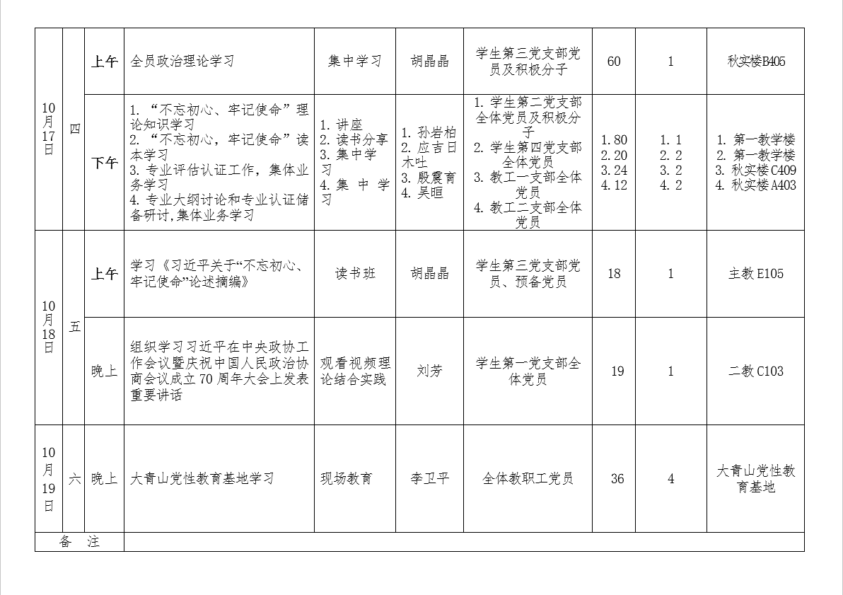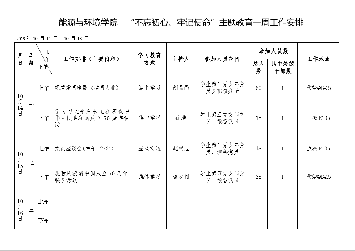 yl6776永利集团 “不忘初心、牢记使命”主题教育一周工作安排(10.14-10.18)
