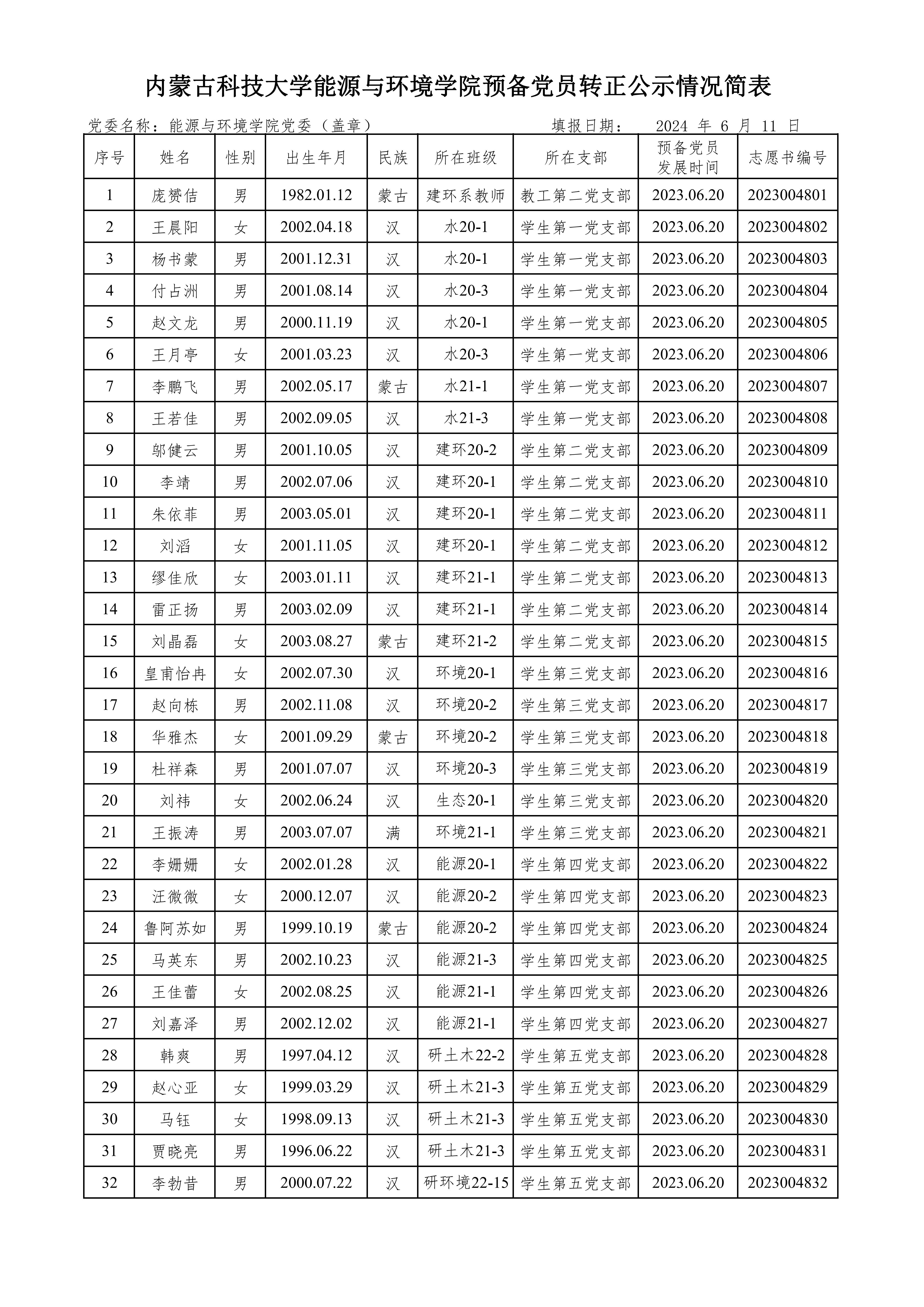 公示期从 2024 年 6 月 11 日至 2024 年 6 月 17 日止。在公示期内,任何单位和个人均可采用电话、信函或直接来访的形式,向yl6776永利集团党委反映庞赟佶等三十二位同志在政治立场、理想信念、思想品德、入党动机、工作表现、廉洁自律和遵纪守法等方面的情况,同时也可反映基层党组织在发展党员工作中坚持党员标准和发展党员工作程序等方面的情况。反映问题要求实事求是,客观公正。