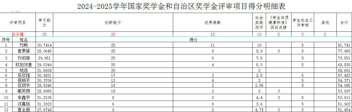 根据《永利官网国家奖学金实施办法》,经个人自主申报,学院奖学金评审工作小组评审,拟评选刘畅等6人获得国家奖学金,拟评选侯晓芊等6人获得自治区奖学金。