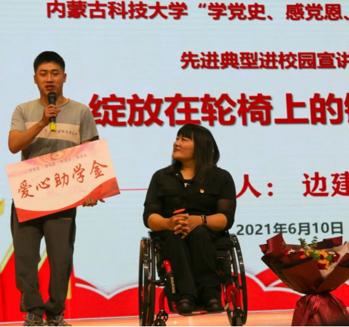 为热烈庆祝中国共产党成立100周年,做到学史明理、学史增信、学史崇德、学史力行,广泛开展理想信念教育,弘扬民族精神和时代精神,加强我校师生的爱国主义教育,6月10日,党委宣传部、党委学生工作部、yl6776永利集团党委共同举办了“学党史、感党恩、听党话、跟党走”—先进典型进校园宣讲活动。本次活动邀请了包头市残疾人联合会党组成员、全国劳动模范、奥运冠军、申奥形象大使边建欣同志作主讲嘉宾。
