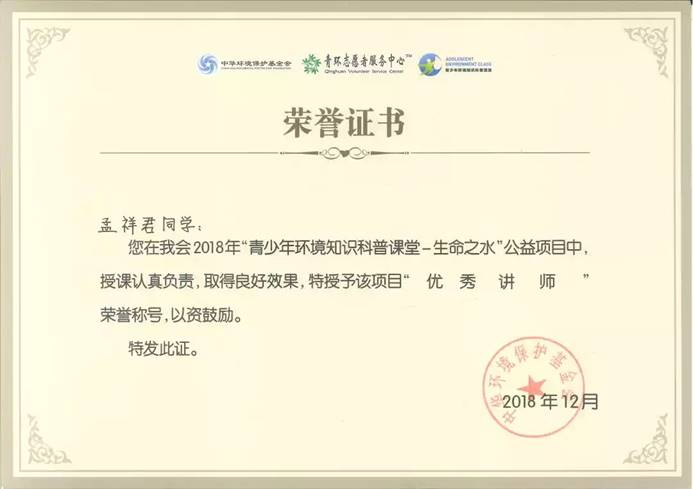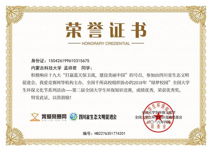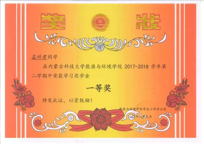 在校期间的孟祥君,曾担任yl6776永利集团学生第四党支部组织委员,在职其间充分发挥党员先锋模范作用,协助支部书记认真完成支部的每一项工作;他热爱生活,努力学习,多次获得学习奖学金,并顺利通过国家英语四级考试、国家计算机等级考试二级、三级;课余时间中也不断突破自我,积极参与各类社会实践活动,荣获“全国大学生环保知识竞赛优秀奖”、"绿梦校园全国大学生环保文化节优秀工作者”、“2018年校级朗诵比赛荣获团体赛二等奖”等多项荣誉。