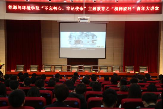 为深入贯彻习近平总书记在纪念五四运动100周年大会上的讲话和庆祝中华人民共和国成立70周年大会上的讲话精神,紧密结合“不忘初心、牢记使命”主题教育,激发广大青年学子实现中华民族伟大复兴的奋斗精神,11月30日,我院举办了“不忘初心、牢记使命”主题教育之“榜样能环”青年大讲堂系列活动。