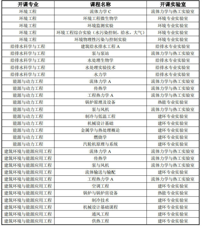 学院具备实验总室机构设置,下设热工流体基础实验室、环境工程专业实验室、给水排水工程专业实验室、建筑环境与设备工程专业实验室和能源与动力工程专业实验室。专职和兼职实验人员7人,实验室面积约1500平米,教学实验仪器设备约100台套。近几年通过积极争取各类资金支持,更新了常规仪器并增加了大型仪器设备,形成了满足能源动力、专业人才培养的功能齐全、资源共享、管理科学的实验实践教学平台。实验开出率100%,现阶段能够基本满足学院及全校的实验教学计划及任务。